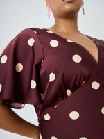 Elevate your style with the Me&B Burgundy Printed Satin Empire Dress. Made from 100% Poly, this fit & flare dress features a V-neck and short sleeves for a chic look. Perfect for any occasion, this maxi dress is a must-have in your wardrobe. Stay cool and stunning in this South African-designed piece.