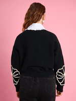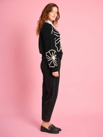 Timeless meets texture with the Me&B Cornelli Flower Jumper in black and cream. Featuring a classic crew neckline, long sleeves, and a regular-length fit, this cozy knit is elevated by intricate Cornelli flower embroidery in cream. Effortlessly chic and versatile, it pairs perfectly with our new mom jeans for an effortlessly stylish look.