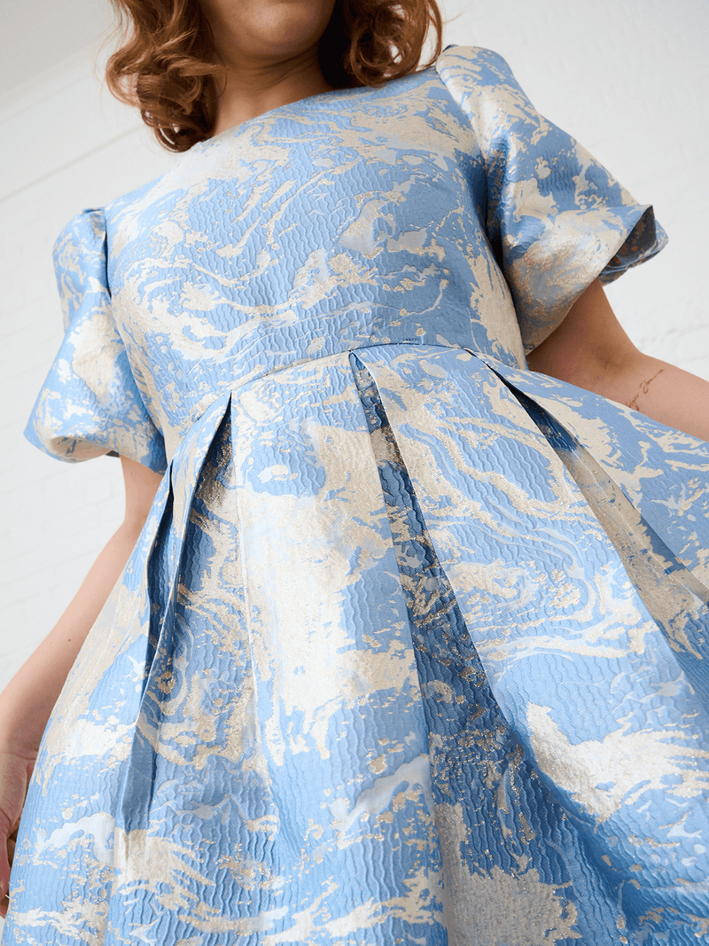 Get ready to shine in the Me&B Ice Blue XO Dress! Made from a luxurious brocade fabric, this dress features a flattering fit and eye-catching design. Perfect for any special occasion, the dress is sure to turn heads. Crafted with a blend of polyester and lurex, it's as comfortable as it is stylish. Say yes to this dress and elevate your wardrobe!