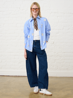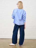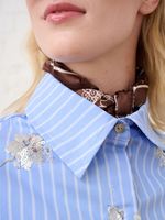 Make a statement in the Women's Me&B Luxe Sequined Shirt in Blue Stripe. This eye-catching piece combines classic tailoring with a touch of glamour, featuring shimmering sequins that elevate the traditional stripe pattern. Perfect for adding a sophisticated sparkle to your evening ensemble or dressing up your favourite denim, it is a versatile essential for any modern wardrobe.