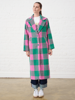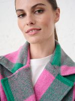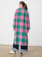 Make a bold statement with the Women's Me&B Melton Coat, featuring a striking pink and green check pattern. This beautifully tailored coat combines a classic silhouette with a vibrant, modern twist, ensuring you stay warm and stylish throughout the cooler months. Perfect for layering over any outfit, it is the ultimate standout piece for your winter wardrobe.