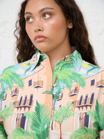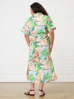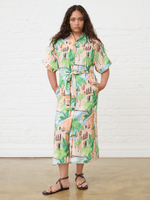 Get into the festive spirit with this fun Multi Holiday Print Shirt Dress from Me&B. Made from a soft rayon blend, this collared dress features a midi length and short sleeves for a comfortable fit. Perfect for all your holiday gatherings and events. Made in South Africa.