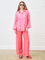 This classic shirt is anything but boring thanks to this new stripe and detachable bow combo. We love letting the bellow sleeve do all the talking, so tone the look down with your go-to jeans - you'll be sure to turn heads all season
