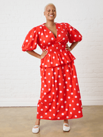 Twirl into fun with the Cotton Maxi Skirt in Pink Spot! This playful A-line skirt features a comfy elasticated waist and flows to a flattering maxi length. The charming pink spot pattern adds a sweet pop of colour, and it pairs perfectly with the matching blouse for a coordinated, cheerful look.