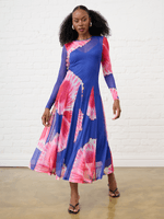 Turn heads in the Me&B Watercolour Bloom Dress. Its delicate mesh fabric and godet hem create a fluid, flattering silhouette that celebrates every curve in a stunning floral print.