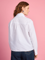 Stay chic in this White Peter Pan Frill Collar Shirt by Me&B. Made from 100% cotton poplin for a comfortable fit. Features a stylish frill collar for added charm. Perfect for any occasion, this shirt is a versatile addition to your wardrobe. Easy to style and effortlessly chic.