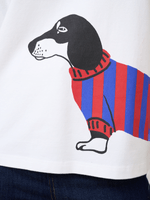 Make a fun statement with the Women's White Statement T-shirt featuring an adorable dog print. A classic white tee with a playful twist, perfect for casual outings.