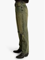 Introducing our Women's One Teaspoon Green High Rise Straight Leg Jeans. These jeans are crafted from 100% cotton, providing comfort and durability. The high rise waist accentuates your figure, while the straight leg design offers a timeless look. Upgrade your denim collection with these stylish and versatile jeans.