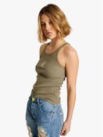 Introducing the Women's One Teaspoon Washed Khaki Rib Tank Top. Made from 100% cotton, this tank top features a cool wash and cool iron care instructions. With its comfortable fabrication and relaxed fit, it's the perfect addition to your wardrobe. Ideal for women, this tank top is a must-have for any occasion.