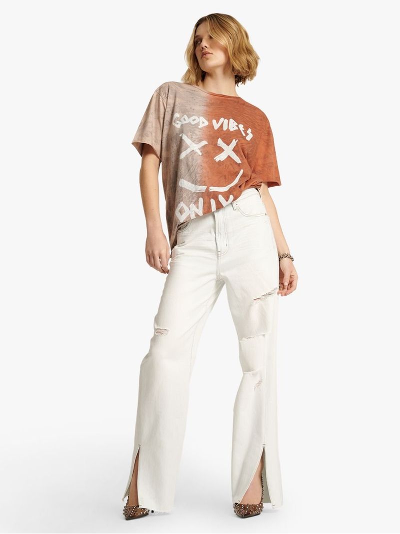 Elevate your denim game with these women's One Teaspoon white straight leg jeans. Made with 100% cotton fabrication, they offer a comfortable and stylish fit. The mid-rise waist adds a flattering touch, while the cool wash care ensures easy maintenance. These jeans are perfect for any occasion. Upgrade your wardrobe with this timeless denim staple.