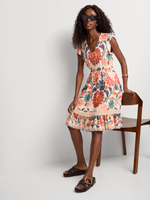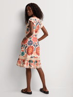 A vibrant printed dress crafted from soft viscose in bold multi orange tones. The lightweight, relaxed silhouette makes it perfect for casual summer days or laid-back holiday wear.