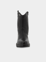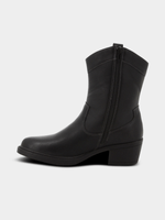 Dallas Cowboy style short boot , with top stitch detail , has side zip for easy entry