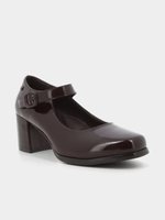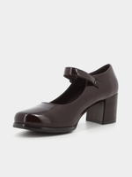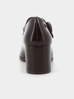 Brown Mary-Jane style block heeled court shoe , with buckle closure .Step in style with Pierre Cardin . Perfect for any occasion.