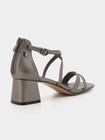 Pewter Metallic PU Strippy heeled sandal .Step in style with Pierre Cardin . Perfect for any occasion.