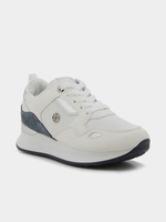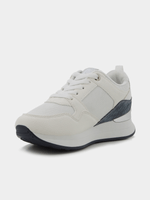 White Trainer with metal PC logo detail .Step in style with Pierre Cardin . Perfect for any occasion.