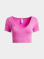 This crop top is everything we are loving for the upcoming season. Featuring a pink seamless fabric and wide band for that extra snatched fit. Style with a cute skirt or jeans and sneakers for a fresh finish.