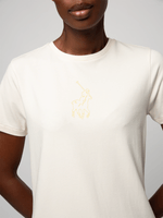Experience premium comfort with our women's T-shirt, crafted from soft cotton-elastane. The chic embroidered pony adds a touch of designer flair.