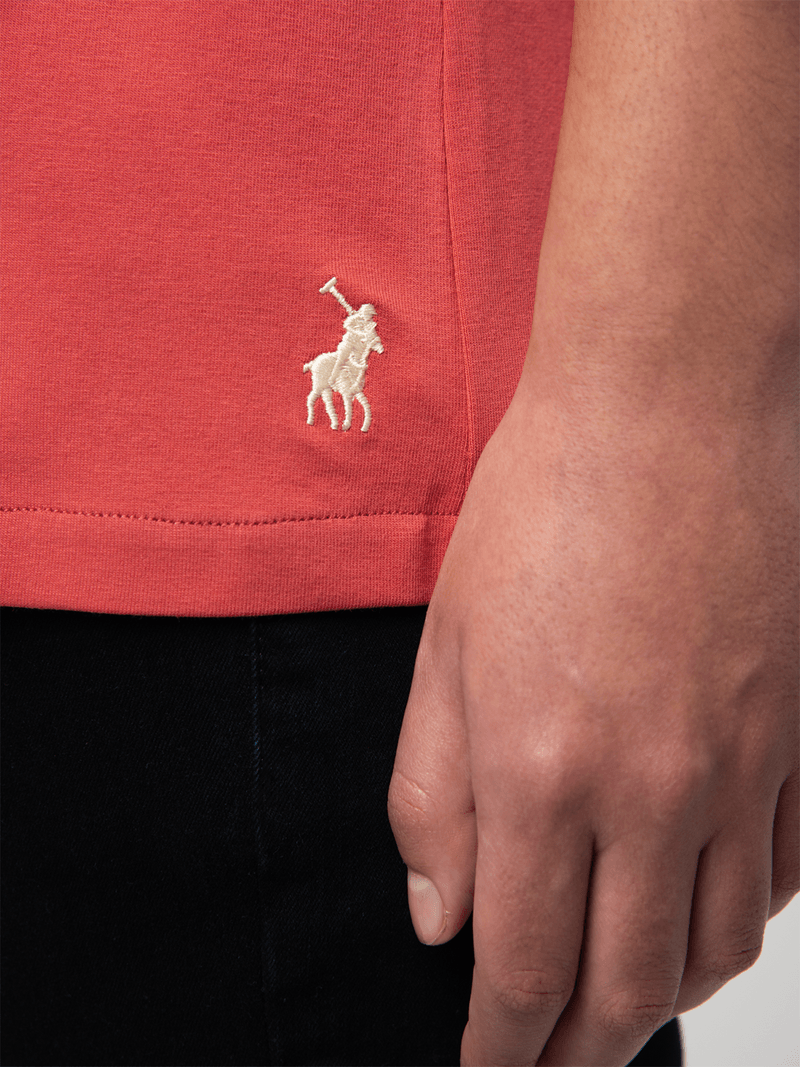 Indulge in the comfort of a premium women's T-shirt, crafted from soft, stretchy cotton jersey. This designer piece features delicate embroidery and a classic ribbed neckline, perfect for everyday style.
