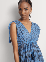 Elevate your style with our kaftan with sleeve tassel detail, animal lurex woven into design, designed in a stunning Blue with lurex shade that adds a modern twist to your wardrobe. Made from Shell: 100% Viscose Lining: 100% Cotton, this piece offers both comfort and durability while keeping you effortlessly chic.
