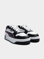 Step up your sneaker game with the Puma Carina Platform. Featuring a sleek white and purple colorway, this stylish shoe is perfect for everyday wear. Made from durable PU material, it offers a comfortable fit and long-lasting quality. With a trendy platform sole, you'll stand out from the crowd. Reward yourself with this versatile and chic sneaker.