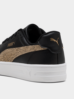 Fierce Meets Classic: The Puma Court Lally Topcat in Black/Cheetah Print is where heritage tennis style meets high-fashion flair. This sneaker takes the sleek, low-profile silhouette of a classic court shoe and injects it with a bold dose of personality. Featuring deep black panels contrasted by striking cheetah print accents, the Topcat is designed for the woman who wants to bring a "wild" edge to her everyday street style.