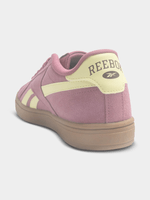 The Women’s Reebok Court Retro in Pink/Yellow is a playful, sun-drenched reimagining of classic 80s tennis footwear. This silhouette features a premium synthetic leather upper in a soft Pastel Pink, serving as a vibrant base for the iconic Vector logo and heel branding in a cheerful Lemon Yellow. Designed for those who love a "candy-coated" aesthetic without losing the clean lines of a traditional court shoe, the Court Retro balances a nostalgic, low-profile design with the lightweight comfort needed for modern daily wear.