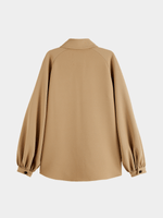 Stay stylish with the Scotch & Soda Beige Crepe Peasant Sleeve Overshirt. Made from a comfortable polyester blend, this chic top is perfect for any occasion. Designed in China, it features an elegant crepe fabric composition of 95% polyester and 5% elastane. With a relaxed fit and peasant sleeves, this overshift is a must-have addition to your wardrobe.