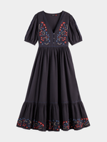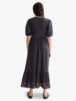 Make a statement in this stunning charcoal maxi dress. Featuring beautiful, intricate embroidery and a graceful flowy silhouette, it's the perfect choice for garden parties or evening soirées this season.