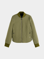 Stay warm and stylish with the Scotch & Soda Green Reversible Vertical Quilted Bomber Jacket. Made from 100% nylon, this jacket is perfect for any occasion. It features a unique reversible design and long sleeves for added comfort.