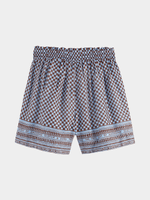 Elevate your summer style with these high-rise shorts from Scotch & Soda. Featuring a multi-color lurex stripe design, these shorts are made from a comfortable cotton blend fabric. Perfect for any occasion, these shorts are a must-have for your wardrobe.