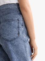Make a fashion-forward statement with these navy balloon jeans. The unique voluminous silhouette and longer inseam offer a modern, architectural look that pairs perfectly with fitted tops.