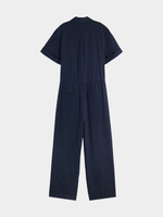 Get ready to conquer the day in style with this navy utility jumpsuit from Scotch & Soda. Made from a blend of Lyocell and cotton, this jumpsuit is both comfortable and durable. With its versatile design, this jumpsuit is perfect for any occasion. Embrace effortless chic with this must-have wardrobe staple. Designed in China.