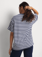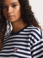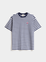 Introducing the Navy & White Core Free Spirit Peace T-Shirt by Scotch & Soda! Made from 100% organic cotton, this top exudes comfort and style. Perfect for everyday wear, this piece is a must-have addition to your wardrobe.