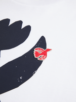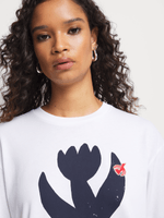 Meet the Scotch & Soda White Core The Free Spirit Peace T-shirt, made from 100% organic cotton for a luxurious feel. This loose-fit top, crafted in Turkey, is perfect for expressing your free spirit.