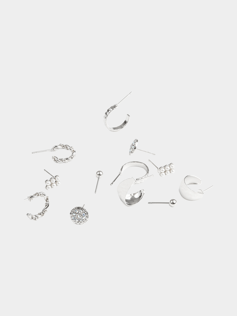 Add a touch of glamour to your outfit with these stunning silver stud and hoop earrings. These earrings are trendy and versatile. They are perfect for any occasion and are easy to style. Treat yourself or gift them to a loved one!