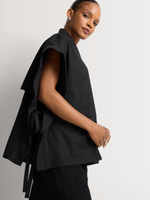 Introducing the Sipho Mbuto Black Square Shaped Utility Jacket, crafted with 100% Cotton for ultimate comfort. This jacket features a stylish square shape and versatile utility style. Made in South Africa, it is easy to care for with warm wash, cool iron, and dry cleanable instructions. Get yours today for a chic and functional addition to your wardrobe!
