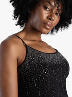 Elevate your style with the Sissy Boy Black Knit Maxi Dress adorned with dazzling rhinestones. Made from a luxurious viscose blend, this dress offers comfort and flair. Cool wash and cool iron for easy care. Perfect for any occasion. Feel confident in this stunning piece.