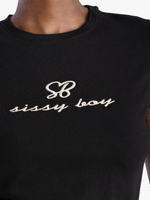 Introducing the Sissy Boy Black Lexi Basic Baby T-shirt, perfect for any casual occasion. Made with a comfortable cotton blend fabric, this tee features cool wash instructions and a stylish fit. Feel confident and stylish in this must-have wardrobe staple.