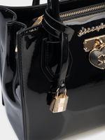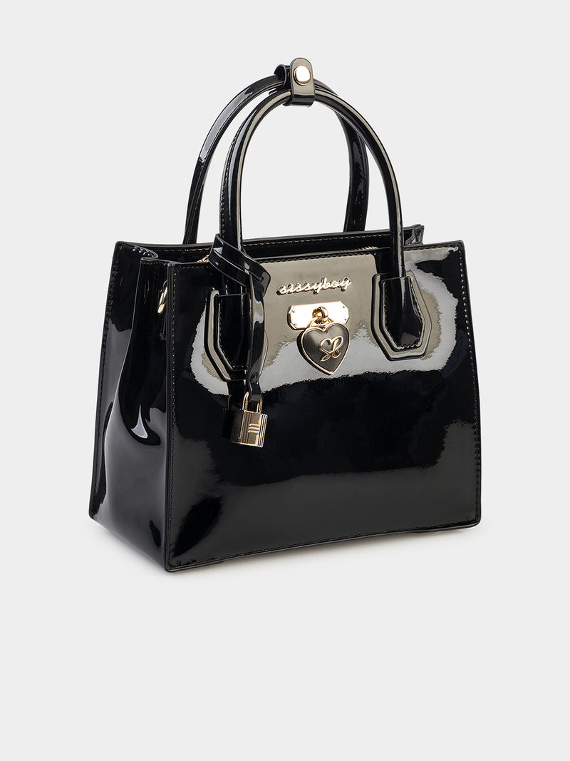Elevate your style with the sleek Sissy Boy Miriam Tote Bag. Made with patent PU fabric from China, this bag is easy to clean with a damp cloth. With a classic black color, this tote is perfect for everyday use. Stay organized and fashionable with this chic accessory.