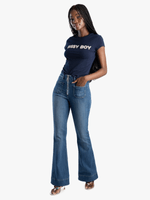 Step out in style with the Sissy Boy Natural Ingrid High Waist Flare Jeans. Made from a comfy cotton blend, these jeans feature a high waist and flare leg for a trendy look. Easy to care for with cool wash and warm iron instructions. Designed in South Africa for the fashion-forward individual.