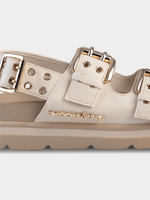 Step out in style with these nude slingback sandals from Sissy Boy. Adorned with chic studs, these sandals are perfect for any occasion. Easy to clean with a damp cloth and made from durable PU material. Stay comfortable and stylish all day long with these fabulous sandals.