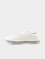 Step up your sneaker game with these bling sole sneakers from Sissy Boy. Made with high-quality PU fabrication, these sneakers are perfect for adding a touch of sparkle to any outfit. Easy to clean with a damp cloth, they are durable and long-lasting. The PU material provides a comfortable fit and the sneakers are not specifically designed for sports, fine jewelry, furniture, or kids. Elevate your style with these trendy sneakers.