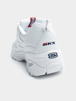 Experience a blend of durability and style with these Skechers Energy kicks. Made with premium leather, they provide lasting comfort for all-day wear. The white, navy, and red design offers a classic look, and we offer convenient returns for your satisfaction.