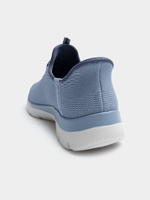 Get ready to conquer any summit in style with the Skechers Summit Slip-In Blue/White Sneaker. Made of breathable mesh fabric, these slip-ons offer comfort and versatility. With staff discount available and easy returns, there's no reason not to add these to your collection.