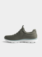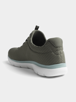 The Skechers Summits shoe is your go-to for comfort and convenience. It features a sleek, flat knit mesh upper and a bungee-laced front for an easy slip-on fit. Inside, a plush Memory Foam comfort insole cushions your foot, making this sneaker perfect for all-day wear.