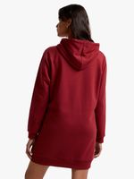 Stay cozy yet chic in our Sneaker Factory burgundy hoody dress. Made from a comfy poly cotton blend, this dress is perfect for all-day wear. Features include a warm fleece lining and a relaxed fit for ultimate comfort. Versatile and stylish, this dress is a must-have for your wardrobe.