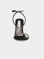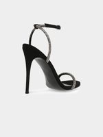 Sparkling rhinestone embellishment elevates this elegantly stilettoed dress shoe, giving new meaning to the term fancy footwork.