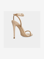 Sparkling rhinestone embellishment elevates this elegantly stilettoed dress shoe, giving new meaning to the term fancy footwork.