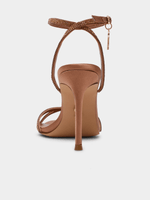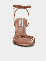 Enhance your outfit with these sleek JYPSEY heels. The strappy design and secure ankle strap provide a sophisticated touch, while the rounded toe and crisscross back add a unique flair. With a stunning stiletto heel, these heels are perfect for any formal or professional occasion.