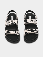 The MONA takes the classic three-strap sandal design with a molded footbed and a flat sole and elevates it with a leather construction and substantial gold tone hardware.